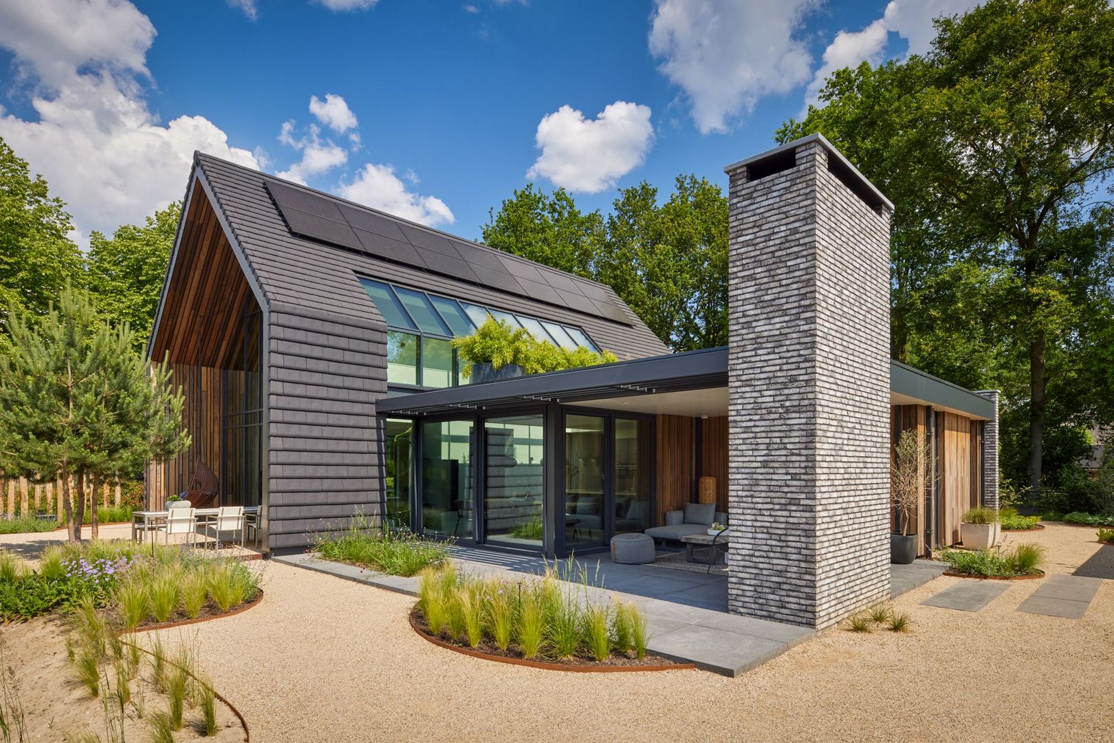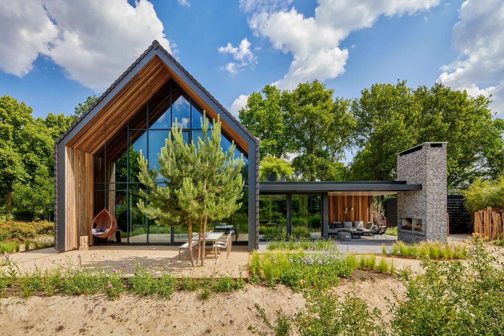 Deze eigentijdse woning in Uden combineert moderne architectuur met warme natuurlijke materialen. Het ontwerp focust op openheid, licht en een sterke verbinding met de omliggende natuur. De strakke lijnen, doordachte zichtassen en zorgvuldig gekozen details creëren een woning die rust en verfijning uitstraalt. Helemaal afgestemd op de wensen van de bewoners.